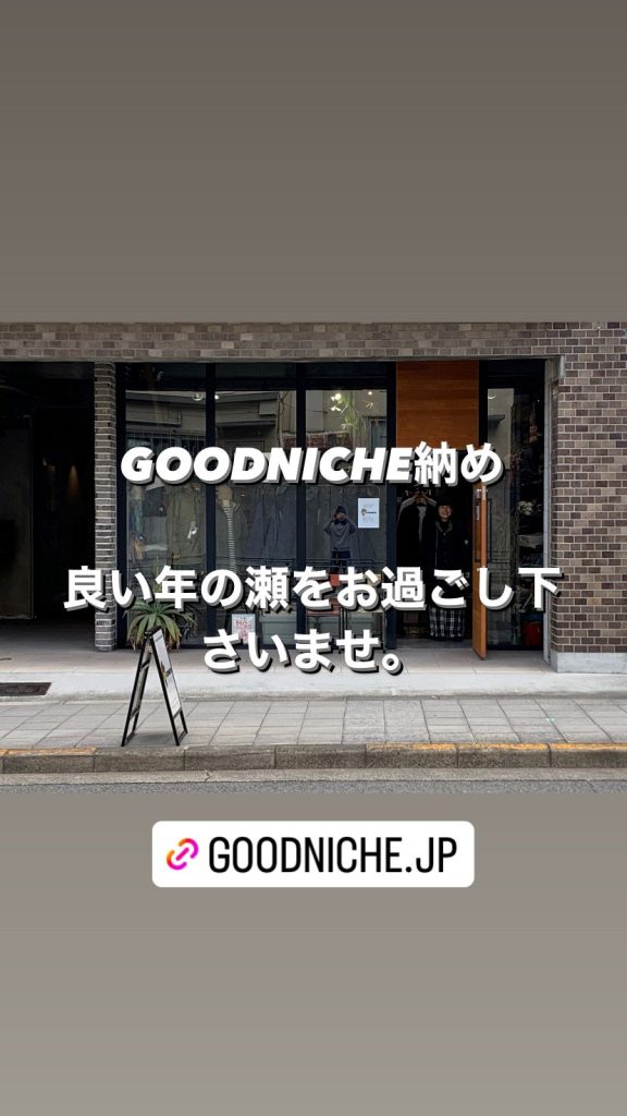 本日12月29日(月)で2025年の営業を納めさせていただきます。今年一年ありがとうございました。GOODNICHE FAMILIYをはじめ、GOODNICHE FRIENDSそして皆さま、その他メーカー様や関係者の皆様に深く感謝申し上げます。至らぬことも多々ございましたが、たくさんの方々に支えられ生かされてまいりました。本当にありがとうございました。感謝申し上げます。