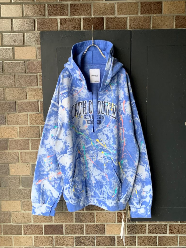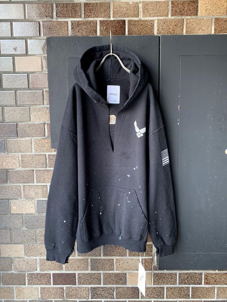 さて、お陰様でご好評いただいています『rebear リメイクスウェットフェア』。職人のセンスと技術の光る1点モノ。ヴィンテージのクルーネックスウェットとスウェットパーカーをベースに、ダメージ・クラッシュ・ペイント・ムラ染めと4種類の加工によって構成されたラインナップでご案内を差し上げています。どれも個性的でありながらも案外とすんなり馴染むデザインでございます。実物を手に取ってお確かめくださいませ。きっと気に入っていただけるかと存じます。
